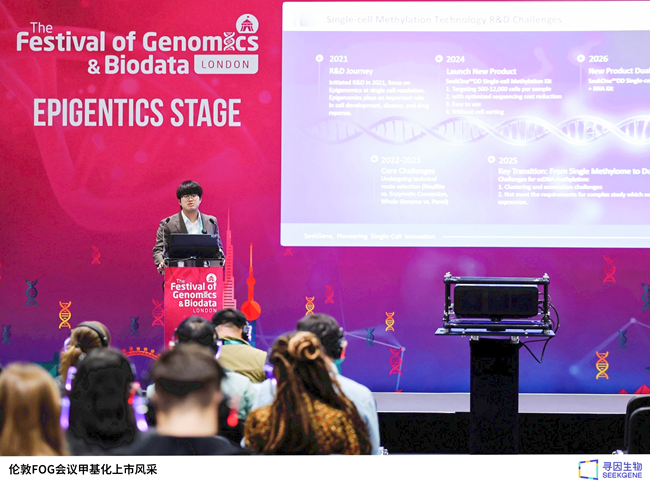 2026年1月28日 ,英国伦敦 ——在Festival of Genomics & Biodata (FOG)大会上,中国单细胞领域的核心企业寻因生物(SeekGene)正式发布了 SeekOne® DD 单细胞DNA甲基化+RNA多组学解决方案。该技术基于自主研发的高通量基因捕获技术,实现了从同一细胞中同步获取RNA表达谱、免疫组库(TCR/BCR)和全基因组DNA甲基化(5mC/5hmC)信号,为破解复杂生物学系统提供了前所未有的高通量、一体化多组学研究工具,助力破解复杂生物学系统研究中的核心难题。