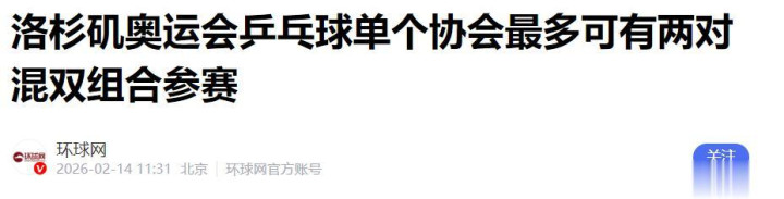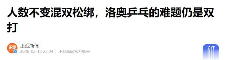 正观新闻——人数不变混双松绑,洛奥乒乓的难题仍是双打