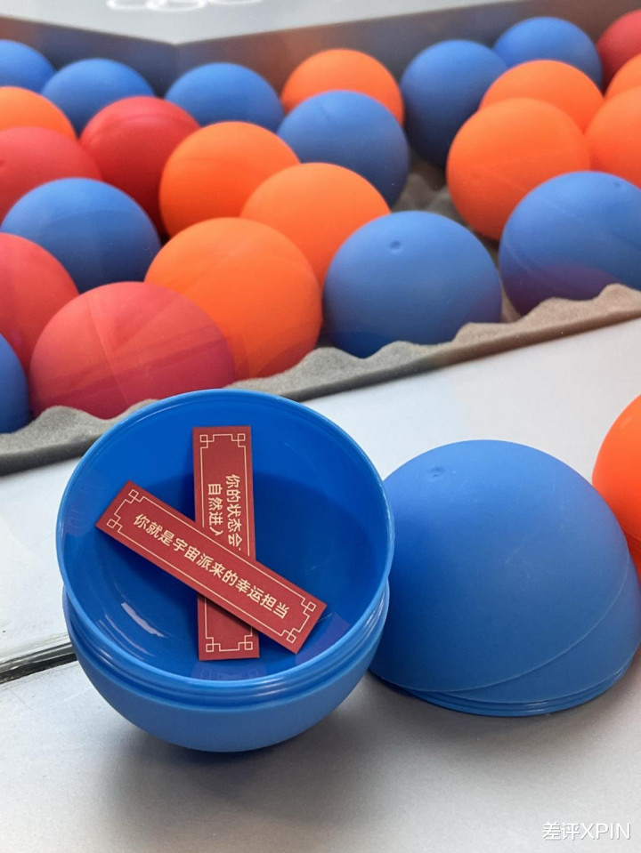 “好运已经来敲门了” “你就是宇宙派来的幸运担当”。类似的好运纸条被放到徽章球里。