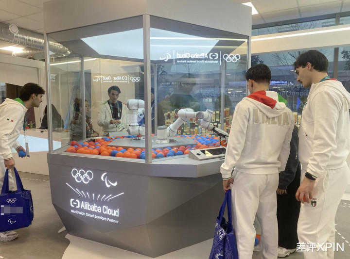 阿里云的这个智能徽章交换装置,主要由徽章球池和两台机械臂组成。玩法也简单,运动员需要先把自己的一枚Pin放到徽章球里,把球放进球池以后,再操控机械臂抓一个别人放进去的徽章球,就可以完成交换。