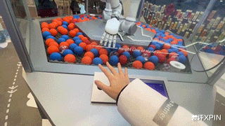 首先听到了你要的是红色徽章球,提取关键词“红色”,接着扫描球池,精准定位球的位置,然后再规划出一条路径,避开障碍物,迅速抓起球递出来。