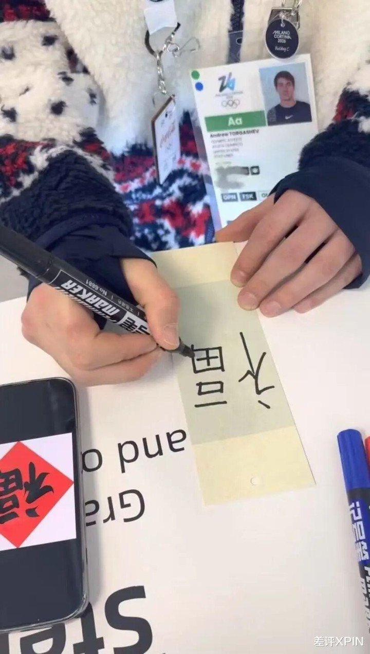 在冬奥村里,你能看到对中文一窍不通的外国运动员,一脸虔诚地写下“福”字,试图把这份喜气,带到米兰的冰雪赛场上。