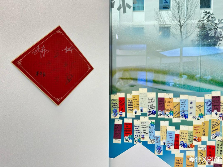 还有很多运动员在赛前,抽到了一纸好运签文,兴奋地跟同伴分享。转个头,旁边的许愿墙上,已经贴上了用各国语言写下的心愿和美好祝福。