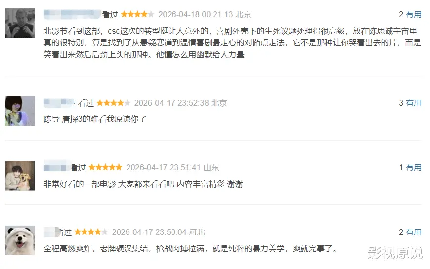 更何况前不久,《10间敢死队》的第一波观众口碑已经正式出炉,几乎全部都是五星和四星的好评,看过首映后都称赞说:“非常好看的一部电影,完全超出预期,有笑点也有泪点,即便是结束了也让人回味无穷”。