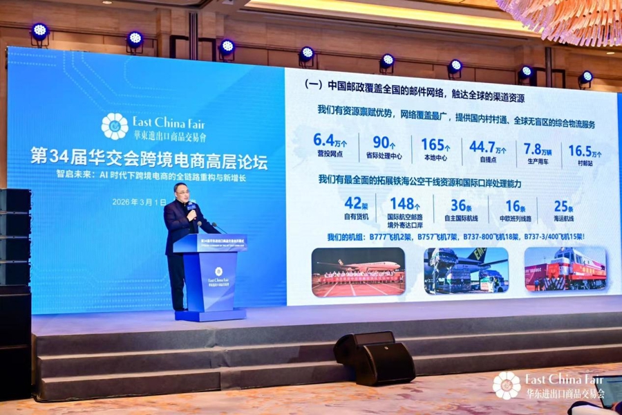 第34届华东进出口商品交易会(以下简称“华交会”)已落幕,上海邮政国际业务分公司第4次受邀参展,以“为美好生活加速”为主题高规格亮相W4跨境电商展区,依托“邮商货仓”跨境供应链综合服务优势,全方位展示跨境物流核心能力,积极对接全球客商,在这场国际贸易盛会中传递邮政力量,持续提升品牌在跨境物流领域的影响力。
